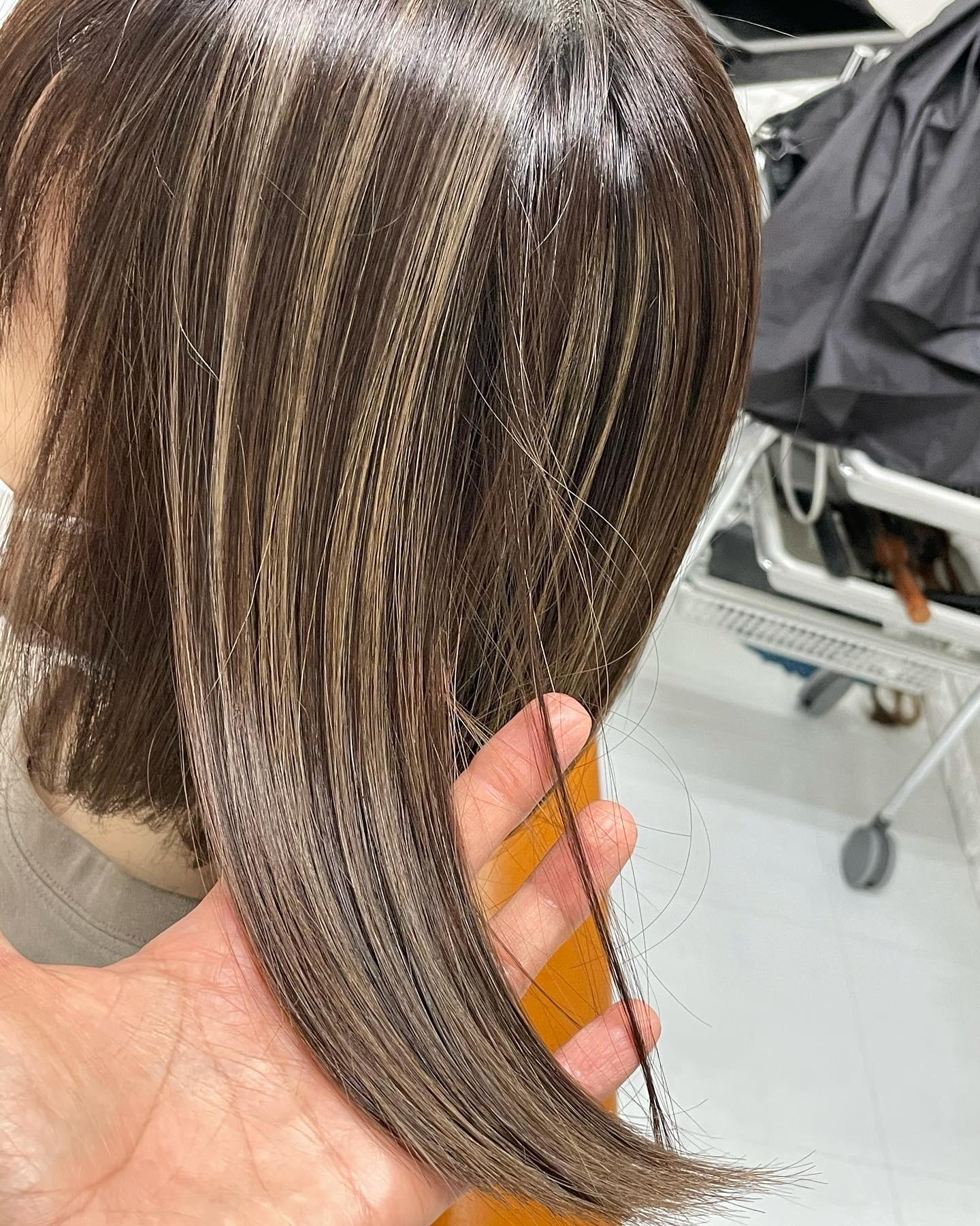 全体的にブリーチを使用した筋感を作り陰影をデザインしていきます。ケアブリーチのみ使用。 しっかりとした陰影は間塗り+¥3000〜¥5000 トリートメント+4250